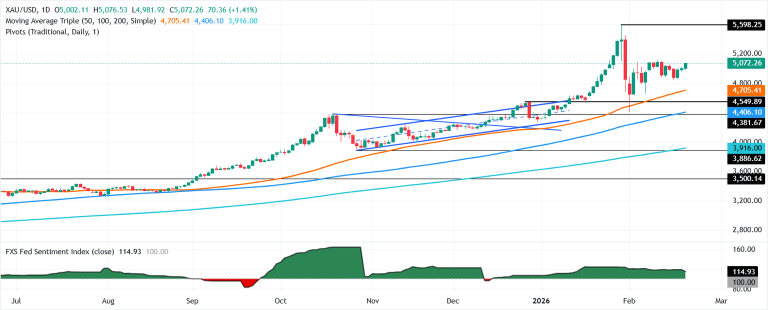 Technical outlook: Gold buyers reclaim $5,000 eyes on $5,100 for further gains